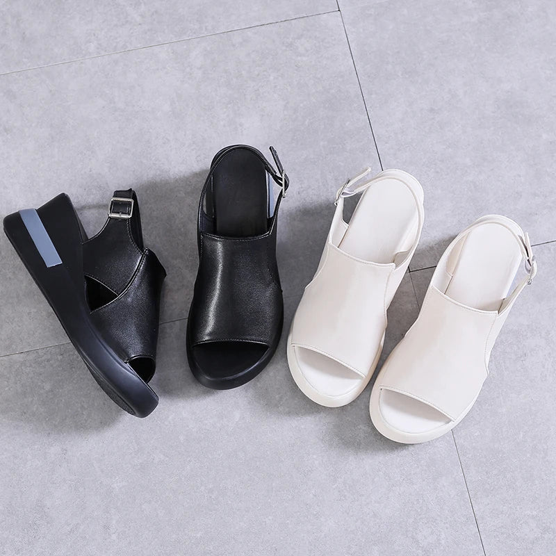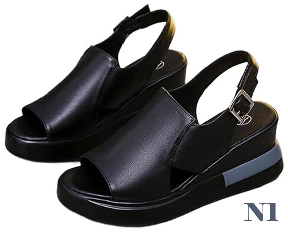 Imagina unas sandalias que no sólo realcen tu atuendo, sino que además te proporcionen la máxima comodidad. Con las sandalias de cuña Isabela, ya no tendrás que renunciar a nada. Estas sandalias cuentan con un tacón de cuña estable que ofrece altura sin el dolor, un color sólido que complementa cualquier atuendo de verano, y un diseño de punta abierta seguro ideal para el calor de la temporada.