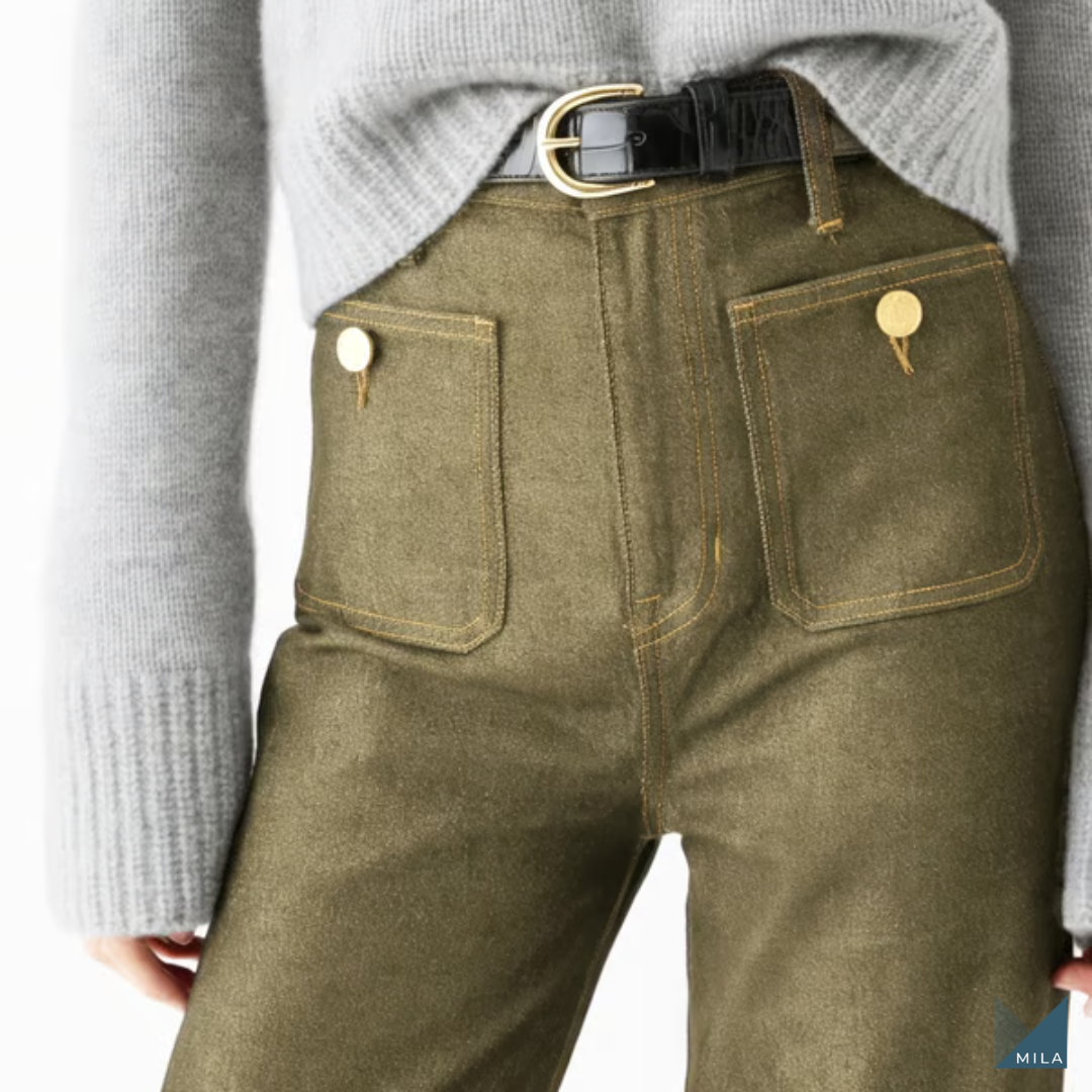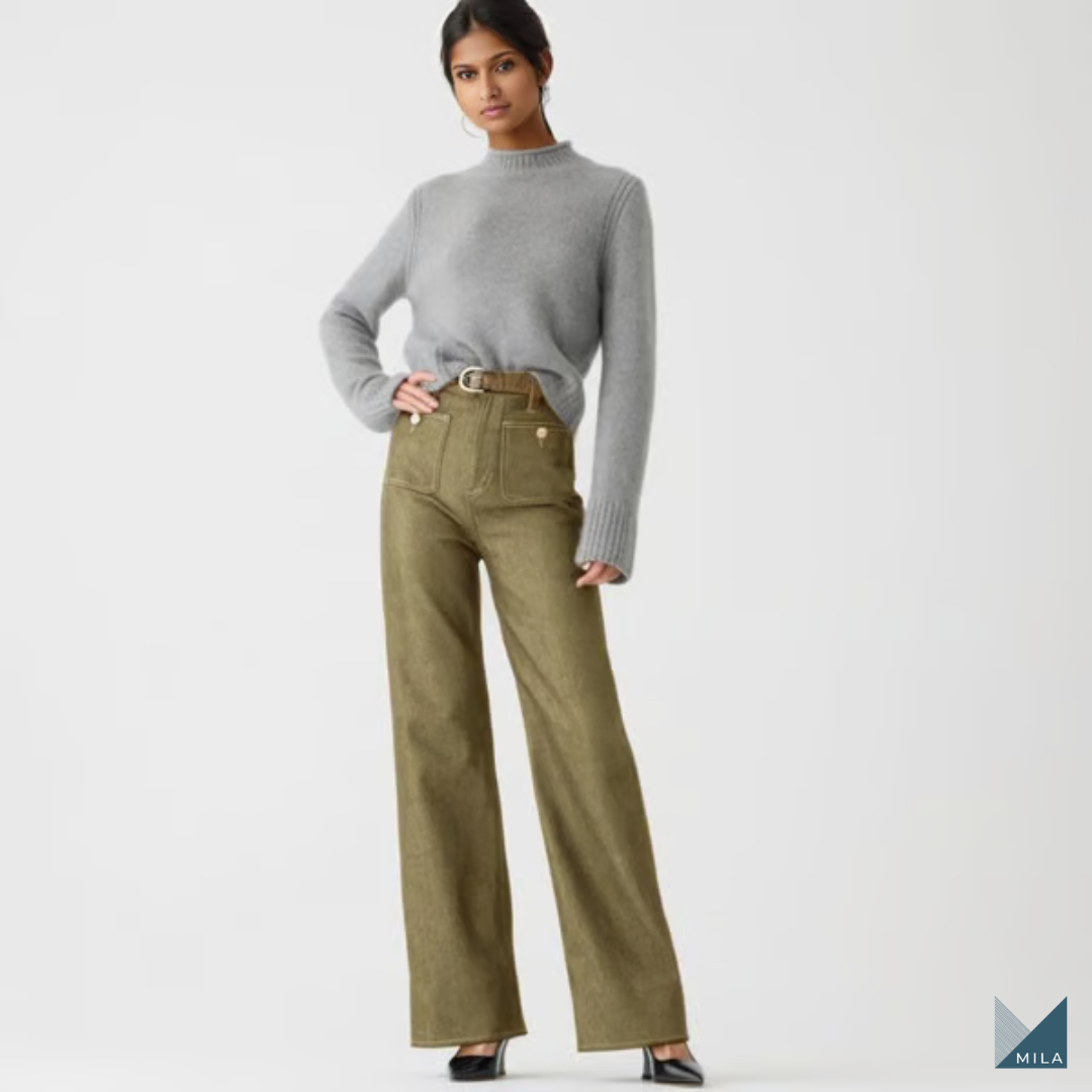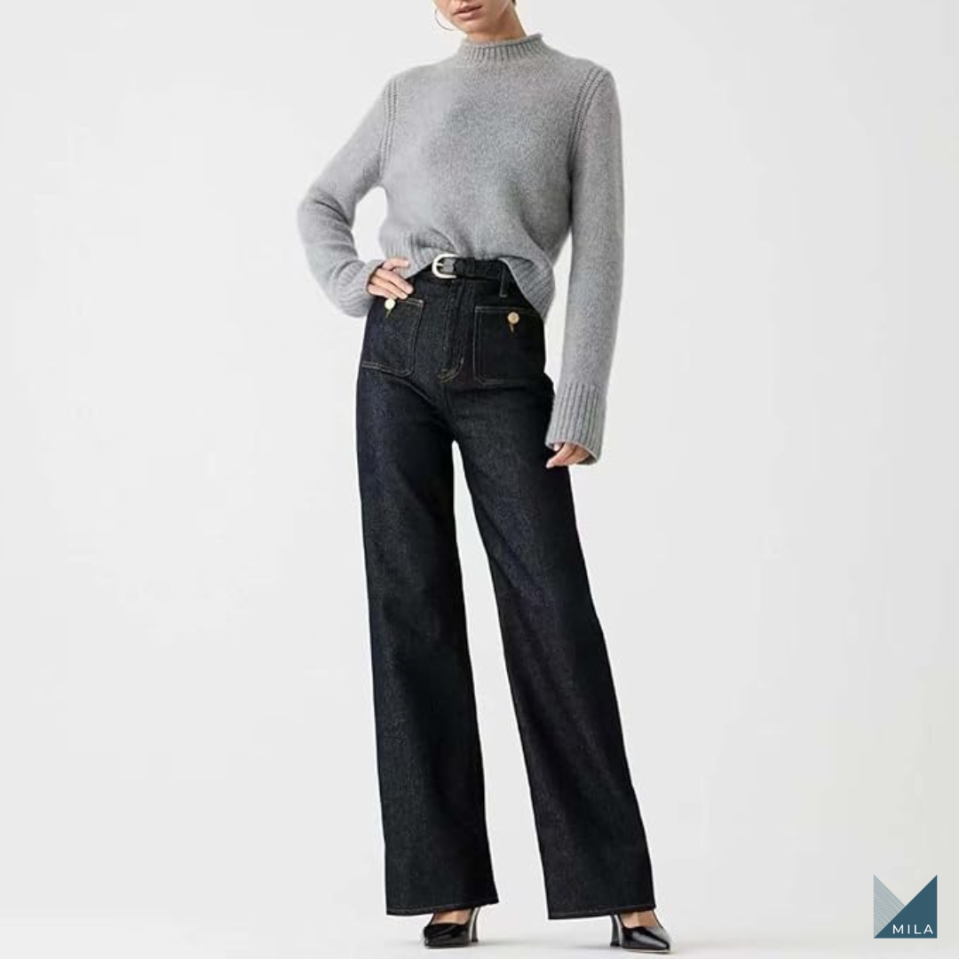 Descubre la comodidad de los pantalones vaqueros Mila, que con su cintura alta y ajuste elástico, se adaptan a tu cuerpo, permitiéndote moverte con libertad todo el día.