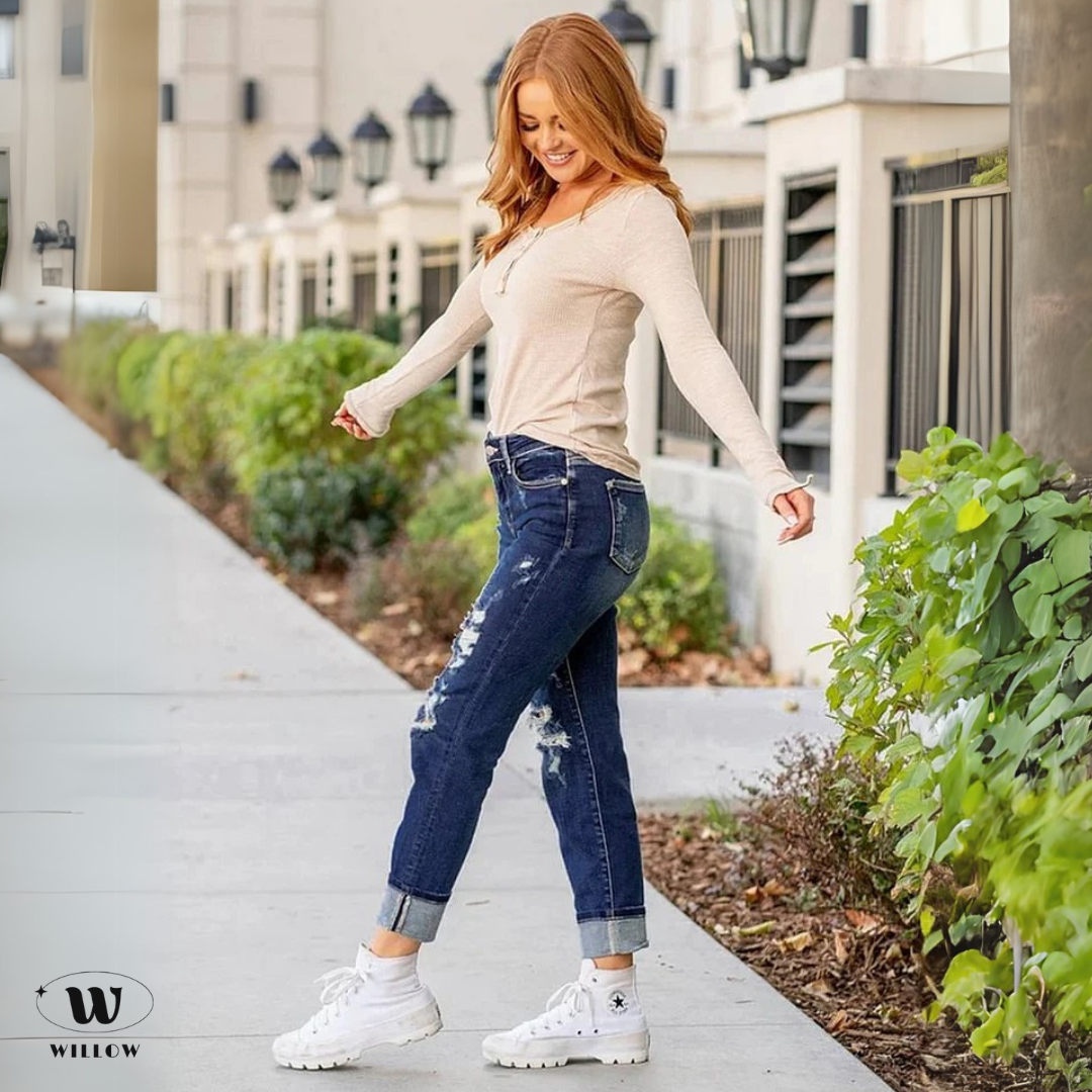 Estos vaqueros holgados Willow de tiro medio te ofrecen el equilibrio perfecto entre moda y funcionalidad. Con su diseño rasgado moderno y su elasticidad, son ideales para cualquier evento casual o salida nocturna. Los detalles cuidadosamente diseñados garantizan que te sientas segura y con estilo en cada situación.